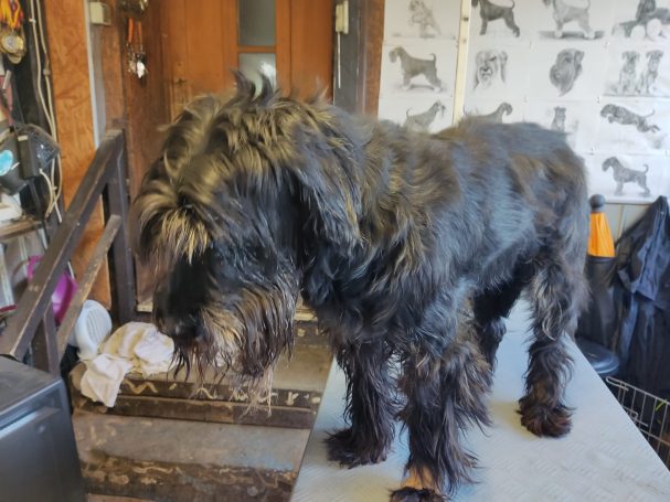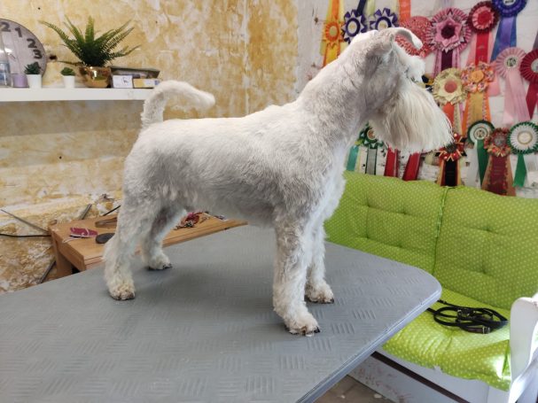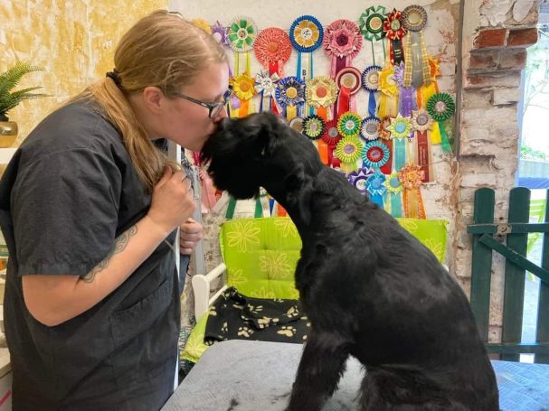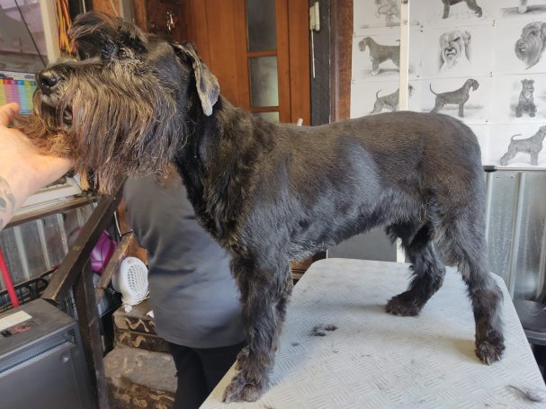 Im Jahr 2003 fing meine Mutter mit der Zucht von schwarzen Schnauzern an. Sie erlernte das Trimmen erst von Züchter Kollegen und hat im Anschluß Seminare der Fachverbände und Rassespezialisten besucht. Alles was Sie in den ganzen Jahren gelernt und erfolgreich erarbeitet hat, hat Sie mir weitergegeben. Ich habe immer geholfen unsere eigene Zucht- und Showhunde zu frisieren seit dem ich so 15 Jahre alt war. Später hab ich die Pflege einzelner Hunde komplett alleine gemacht. Seit 2022 arbeite ich als hauptberuflich als Hundefriseur